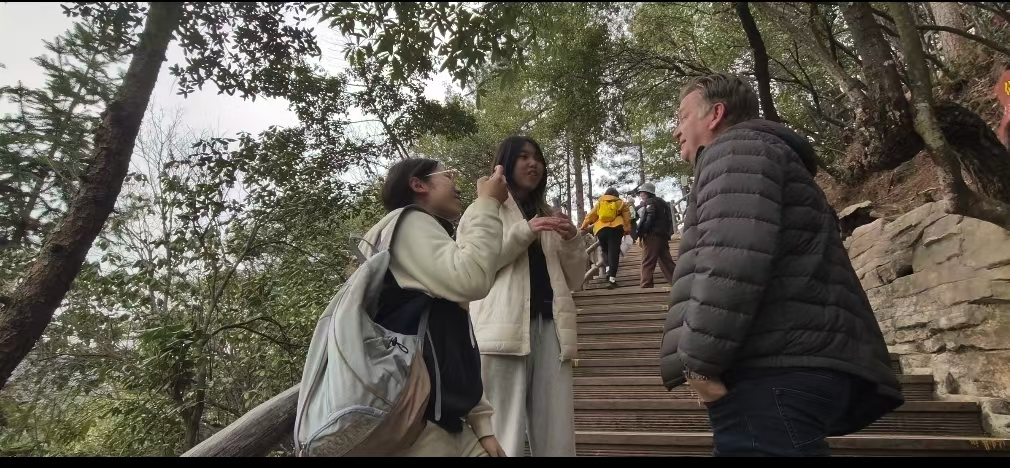 3月14日,为深化产教融合、锤炼学生实战技能,文学院英语系主任胡乔鑫、教师刘晓亚、辅导员龚冠萤带领 23 英语国际旅游班及文学院部分已考取导游证的学生,走进张家界国家森林公园开展实践课程。景投公司对接专业导游全程指导,学生按教学安排分为三组开展沉浸式学习,国际导游班同步面向外籍游客完成采访调查,实现外语专业与文旅产业的精准对接。