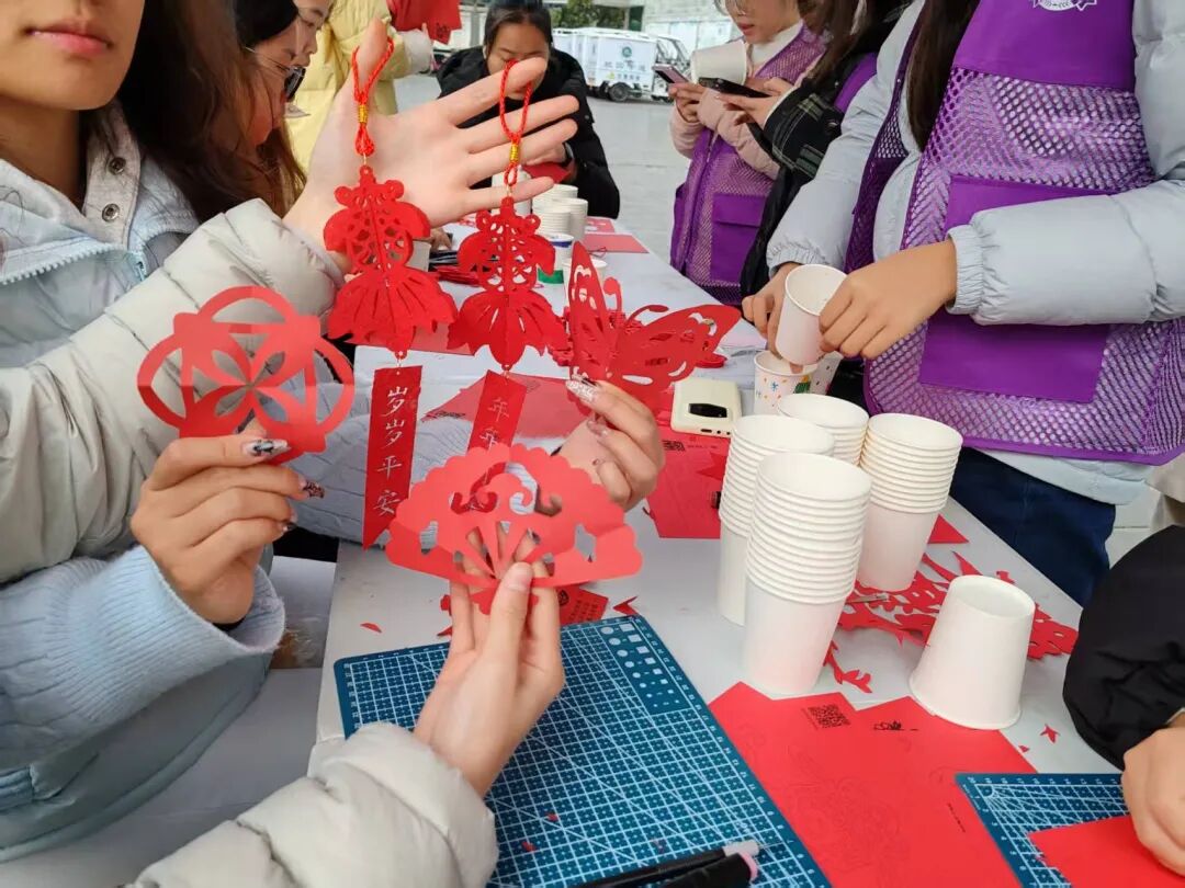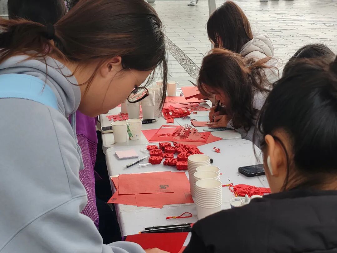 为传承中华优秀传统文化,丰富校园文化生活,我院青力青为志愿服务团队于12月15日在一食堂门口成功开展“指尖生花传非遗”剪纸文化体验活动。本次活动以志愿之力搭建非遗传承桥梁,吸引了众多同学踊跃参与。