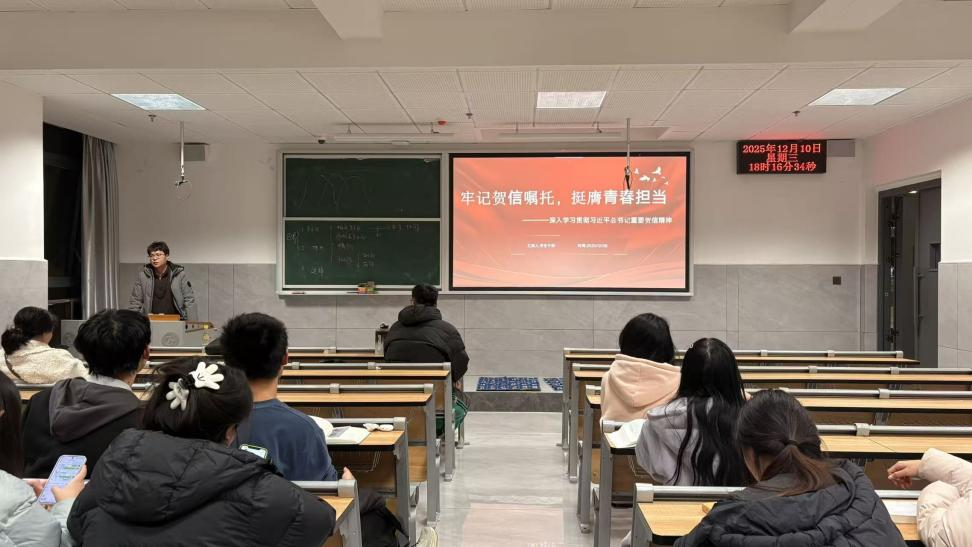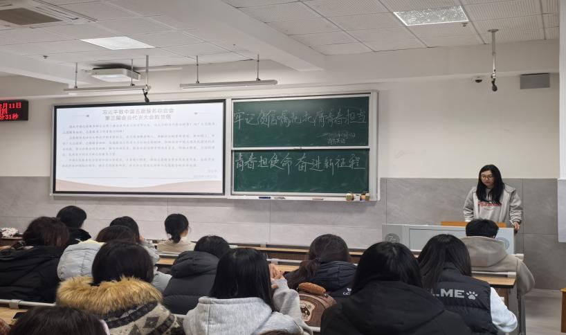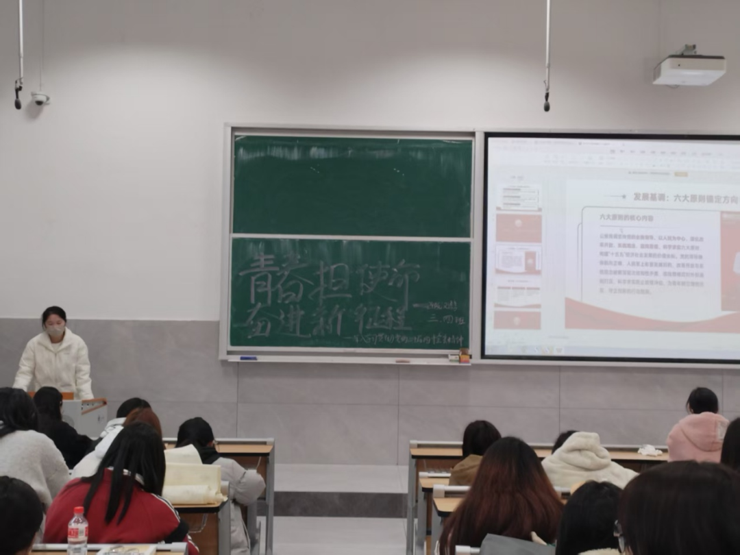 本次团课由文学院团总支学生干部担任宣讲人,深入文学院各团支部开展主题团课。本次团课学生干部结合志愿服务、创新创业等青年实践,引导同学们将宏伟蓝图转化为具体行动,最后发出行动倡议,号召青年学子从勤学、创新、服务、自律四个方面主动作为,夯实基础、锤炼本领,以青春之力为强国建设、民族复兴贡献力量。
